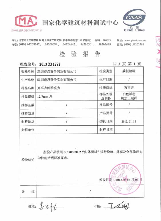 万事吉纯雅克力检测报告1